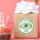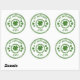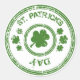 Stickers shown in a round circle shape with a St. Patrick's Day clovers print.