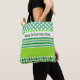 Run your errands with this multi patterned tote bag. This design features various shades of green on a white background. There's a white band with text that reads, 'HAPPY ST. PATRICKS DAY". You can customise the text.