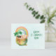 Postcard with an adorable illustration featuring a smiling green and gold pot with a cute rainbow,