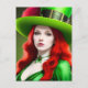 AI generated woman with red hair and a big green tophat for St. Patrick's Day