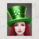 St. Patricks Day Woman Red Hair Green Tophat Postcard