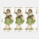 Lovely, set of 3 St. Patrick's Day wrapping paper, features a white and green patterned sheet, green shamrock hearts on a white background and a vintage picture of a dancing Irish miss! Three different designs to use for St. Patrick's Day or Irish gifts! A great way to give presents all wrapped up!