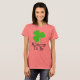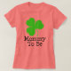 This fun Irish mummy to be ladies tee shirt makes a great statement when you want to announce that you are newly expecting a baby. Green three leaf clover shamrock logo on ladies shirt with green trim.