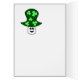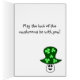 A cartoon mushroom with a green top shaped like a leprechaun hat. The cap has shamrock spots. The white stalk has a happy face, because all fungi love celebrations. The background is pale green with a white shamrock pattern. The front of the card reads "Happy St. Patrick's Day" and the inside says "May the luck of the mushrooms be with you!"