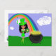 St Pat's Day Brunette Girl Leprechaun with Rainbow Postcard