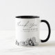 Modern St. Paul skyline coffee mug favour gift with "thank you" script. The design showcases a stunning sketch with the ability to customise your names and exact location. Enter the Zazzle design tool for additional customisations.