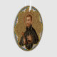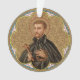 St. Peter Claver (1580-1654) was a Spanish Jesuit priest and missionary. In 1610, St. Peter volunteered to serve in the New Kingdom of Granada in the Americas, which encompassed present-day Panama, Colombia, and Venezuela. There he worked for forty years ministering to slaves upon their arrival at Cartagena, a major hub in the Transatlantic slave trade, and on the plantations in the neighbouring countryside. His tireless efforts not only to convert the slaves to Catholicism by preaching Christ crucified but to ameliorate their sufferings earned him the epithet “Slave of the Africans”. + Here St. Peter is shown clad in Jesuit garb—a black cassock and collared cape. He holds a simple brown wooden cross and a crown of thorns, symbols of Jesus as “a man of sorrows and acquainted with grief” (Isaiah 53:3). The image is enclosed in an inner frame reminiscent of a Gothic eight-petalled rose (or wheel) window; the corners of the simple, square outer frame are filled with heraldic thistles. + St. Peter Claver died on 8 September 1654 of natural causes after a long illness. He is patron saint of Inter-racial justice, African Americans, African missions, slaves, and the Republic of Colombia. + Feast: September 9 + Image Credit (BK 058): Antique image of S[aint] Petrus [Peter] Claver, S.J., originally published in chromolithography by B. Kühlen, Mönchengladbach, Germany, unnumbered Jesuit Series, late 19th century, from the designer’s private collection of religious ephemera.