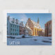 Panoramic view of St. Peter's Church and surrounded historical buildings in winter in old town in Riga, Latvia