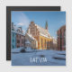 Panoramic view of St. Peter's Church and surrounded historical buildings in winter in old town in Riga, Latvia.