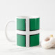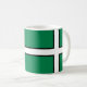 Mug with design with a flag of historic county of Devon, in England, Great Britain; green flag with a white cross with a black border