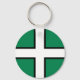 Keychain with design with a flag of historic county of Devon, in England, Great Britain; green flag with a white cross with a black border