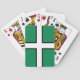 Poker playing cards with design with a flag of historic county of Devon, in England, Great Britain; green flag with a white cross with a black border