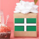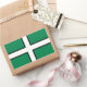 Sticker with design with a flag of historic county of Devon, in England, Great Britain; green flag with a white cross with a black border