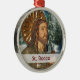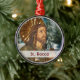 Religious Saint Rocco silver framed premium round ornament. Patron Saint of the sick, known as Saint Rocco, San Rocco, or St. Roch. This round shaped ornament features a version of a digital artwork of St. Rocco for Christmas by XG Designs NYC. The art features a close up portrait of Saint Rocco in a winter scene with falling snow on him. The artwork is displayed inside a silver framed ornament with a red ribbon for displaying on your tree. A lovely keepsake religious gift for family and friends or to add to your own ornament collection. It is in a "template" form so that you may edit the name area, to the name you follow him as. You can also delete the name and white banner behind text area, if you would like to purchase the ornament with St. Rocco image only. Please visit our store for more digital art religious and Christmas styles and gifts for everyone on your list!