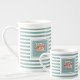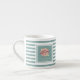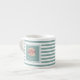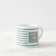 Coffee / espresso mug with teal stripes for St Saint Tropez France tourists, residents or business or beach house owners.