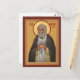 This is a post card size print of an icon of St. The troparion for St. Seraphim of Sarov is printed on the back.