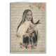 Personalise this beautiful traditional vintage image of St. Therese of the Child Jesus with lovely vintage pink floral roses and vintage background of a prayer to St. Therese in French.
