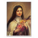 Beautiful traditional image of Carmelite nun St. Therese the Little Flower with crucifix and roses.