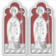 On 16 November 1538, by Royal Proclamation, Henry VIII proscribed St. Thomas Becket (1120-1170). Proscription meant Becket’s shrine in Canterbury Cathedral was dismantled and destroyed; his bones were burned and his ashes scattered; his images and inscriptions were defaced; and all liturgical commemorations of him were forbidden. Churches that had been named in his honour were rededicated to his namesake St. Thomas the Apostle. + To be sure, Becket’s proscription was a part of the King’s more general program known as the Dissolution of Monasteries. Given how Becket was singled out, however, and the vehemence of his proscription, historians cannot help but speculate that there was also a more personal grudge against the prelate at work: Becket’s case was too close for comfort to recent events. + In 1535, Henry VIII had had St. Thomas More martyred by beheading. Aside from the coincidence of their names, the two Henrys (II and VIII) and the two Thomases (Becket and More) had much in common: Both Thomases had been friends with their respective monarchs. Both had served as Chancellor of England. Both had upheld Church over State. Both were considered traitors to the Crown. And, both Henrys had felt betrayed on a deeply personal level. Ironically, today, both Thomases are not only venerated as saints in the Roman Catholic Church but also in the Anglican Communion. + No representations of Becket exist from during his lifetime. All portraits are posthumous and either derived from a lost original or imaginary. Nevertheless, the iconography of the earliest works is remarkably consistent between the few surviving monumental works in England and Continental paintings and sculptures. In these, Becket is usually portrayed in his prime: tall, slim, clean-shaven, garbed for Mass in chasuble and pallium, and carrying a lectionary or Gospel book. Sometimes, he wears his mitre; sometimes, he carries his archiepiscopal cross. No reference is made to his martyrdom. It was unnecessary. Everyone knew the story. + The image here is one of the few to have survived the purge in England. It is an engraving of a painting that was once covered over with whitewash ostensibly to preserve it. Dating from the 16th-century, it represents a further stage in the development of the saint’s iconography. Here, St. Thomas dressed in full canonicals holds his archiepiscopal cross in his left hand and an inverted sword, the instrument of his martyrdom, in his right. Alas, the sword is no longer to be seen. Still, the mere presence of a sword in an artwork is hardly individuating. In one two-volume iconographical study of some 1000 saints, a sword is associated with more than 15% or 150 of them! Of that 150--which includes Early Christian female virgin-martyrs and male soldier saints, some 35 or more are bishops or archbishops. Among these, St. Thomas would eventually receive a motif all his own: a sword piercing his mitered head from side to side (See P 005). + Feast: December 29 + Image Credit (M 033): Antique engraving by Francis Joseph Baigent in 1853 of a painting of St. Thomas Becket discovered at Stoke Charity Church, Hampshire, England, in 1845, originally published in the Journal of the British Archaeological Association, Vol. X (1855), Plate 6, f. p. 74. The painting is on the left front of the Mural Tomb of John Waller, Esq., c. 1525. We have given the trefoil arch a much wider outline here.