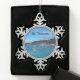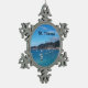 This is a beautiful pewter Christmas tree ornament with a photo of a bay and sailboats in St. Thomas in the Caribbean.