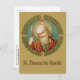 Prefer a different background colour? See the suggested coordinating hues on the Colour Palette postcard for this image. Colour Palette postcards are found in an image's associated COLLECTION and in the Special COLLECTION devoted just to colour palettes. + Image Credit (JMAS 12): Antique image of St. Thomas the Apostle from a late 19th century devotional print in chromolithography with gilt accents originally published by Josef Müller, Art Publisher, Munich, Germany, from the designer's private collection of religious ephemera. The image is one of twelve in the publisher’s Apostle Series (No. 12155). + Feast: July 3