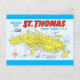 A vintage postcard map of the island of St. Thomas repurposed on a new postcard. This map is so detailed and well illustrated.