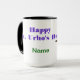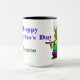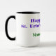 In this design, St. Urho is dealing with a sassy grasshopper who sits on top his pitchfork and is giving the "Peace" sign with his right hand. You can buy this design on any of the other mug items offered. And, you can change the text and customise this for any purpose you'd like.