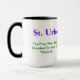 In this design, St. Urho has stabbed that pesty grasshopper with his mighty pitchfork! This design was inspired by the statue in Menahga, MN. You can change the text on this mug to say whatever you wish. You can also buy this design on any of the mug/stein options offered as well.