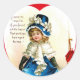 Vintage St. Valentine's Day greeting card illustration with adorable child and slogan, "I came to enquire if you found a little heart that perhaps belonged to me."