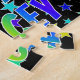 This lively, exciting, birthday-themed jigsaw puzzle design features the message "HAPPY BIRTHDAY, STACEY" with the characters having a colourful rainbow spectrum inspired gradient pattern, along with a fun star field background pattern. A vibrant puzzle like this might be a fun way to acknowledge the birthday of somebody named Stacey. [~Z0000468]