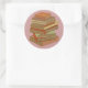 Stickers had a glossy finish which gave them a very professional look. The colour is perfect. And they are the exact size of my lip balm lids. Printing is crisp and clear. Will definitely be ordering again.