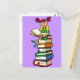 Cute girl sitting on a stack of books. I think my own TBR pile is a bit larger, but you get the idea.