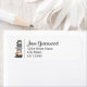 A cute cartoon stack of kitty cats on the left of these cute labels. Each cat has a different colour and fur pattern and each with a cute face. They are stacked one on top of the other. To the side of the design are templates to add your name and address for a custom look.