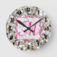 Stack of Glitter Charms Shiny Shiney Silver Red Purple Monogram Initial Wall Clock Personalised