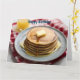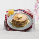 This is an AI generated design. I wanted it to be a stack of pancakes with a pat of butter on top and covered in syrup, the plate I wanted it to be on red chequered table cloth. The glass of orange juice just showed up.