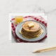 This is an AI generated design. I wanted it to be a stack of pancakes with a pat of butter on top and covered in syrup, the plate I wanted it to be on red chequered table cloth. The glass of orange juice just showed up.