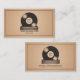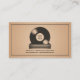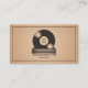 A vintage-style business card with an aesthetic evoking nostalgia and a love for analogue music, and featuring a stack of vinyl records in a warm, muted sepia tone. The topmost record has a faded label displaying customisable "Rock & Folk" text.