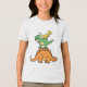 Bring smiles and dino-sized joy with this playful kids' T-shirt featuring a trio of stacked cartoon dinosaurs! A bright orange brontosaurus forms the base, topped with a friendly green T-Rex and a cheerful yellow pterodactyl. Designed in a fun, child-friendly style with bold outlines and vibrant colours, this tee is perfect for little dinosaur lovers with big imaginations.