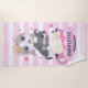 Stacked Cute Cartoon Cats Pink Distressed Stripes Beach Towel