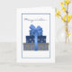 Three wrapped and elegantly designed gift box with a large blue bow holding them together. A unique card to give to family, friends, co-workers, business acquaintances. Personalise text on cover and inside. Matching ostage stamp also available