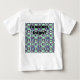 This baby t-shirt has a mid-century modern design of rectangles stack three thick in cool colours of blues, greens, and purples on a field of white. Keep the text and font, change it, or delete it completely.