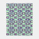 This medium fleece blanket has a mid-century modern design of rectangles stack three thick in cool colours of blues, greens, and purples on a field of white. Want the same design with different colours? Message me.