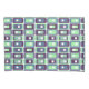 This pillowcase has a mid-century modern design of rectangles stack three thick in cool colours of blues, greens, and purples on a field of white. Want the same design with different colours? Message me.