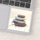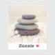 Contour sticker with a photograph featuring rocks stacks on top of each other. Surrounded by loose white rocks and little white flowers.