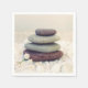 Paper napkins with a photograph featuring rocks stacks on top of each other. Surrounded by loose white rocks and little white flowers.