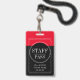 Template red and black staff all access Event Badge. Replace with your own event name and date. A bold contrast badge that catches your eye.