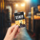 The staff name badge can be customised with your event name, date and venue information. The concert crowd photo may be used or replaced with your own photo. The QR code on back can be customised to direct to your website.