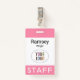 Staff Employee Pink Name Badge Clip Reel Lanyard ID Badge