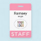 Easily personalise this staff name badge with your company logo, employee name, or other custom text. It's pvc plastic and available with a lanyard, clip, or a retractable reel. This is the pink name badge with a modern minimalist design by MISOOK. Available in other colours and all colours are customisable. No minimum order quantity and no setup fee.