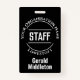 A badge for a Staff Member. Change the wording to your details. Member of Staff badge. Employee badge for a lanyard or clip. Official Staff badge. White text on a black background.